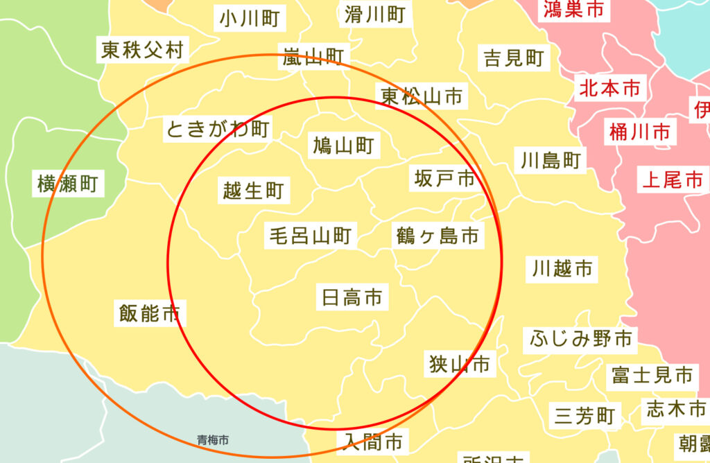 埼玉県鶴ヶ島市・坂戸市・飯能市・日高市・狭山市、東京都青梅市 など